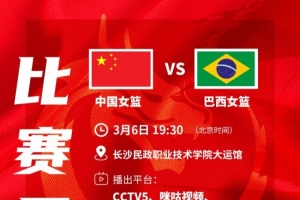 体育资讯3月6日讯 中国篮球之队发布中国女篮最新赛事信息。今晚19:30,中国女篮将在长沙继续对阵巴西女篮。