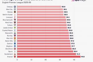 截至目前,Opta统计2025/26赛季英超各队角球前平均延误时间的相关情况大致如此,后续仍需关注进一步消息。
