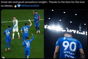 本泽马写道:“伟大的胜利,今晚感觉很棒,感谢球迷们一如既往的爱。”