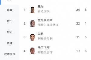 目前的沙特联射手榜上,伊万·托尼以24球领跑,C罗21球暂居第3。