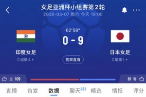 截至目前,太残暴了!日本女足62分钟9-0领先印度女足,队内3人双响的相关情况大致如此,后续仍需关注进一步消息。