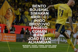 24-本托、26-伊尼戈、5-阿姆里、3-西马坎、12-纳瓦夫、10-马内、11-布罗佐维奇、20-安吉洛、21-科曼、79-菲利克斯、9-哈姆丹