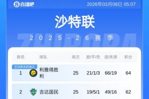 沙特联积分榜:利雅得胜利绝杀2分领跑!吉达国民第二,新月第三近期受到不少球迷关注,相关消息也在持续更新中,整体情况正在逐步明朗。