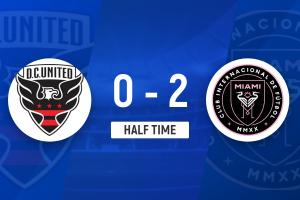 上半场伤停补时2分钟,半场结束,迈阿密国际暂2-0华盛顿联。