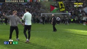 凯尔特人球迷涌入场内庆祝胜利,而流浪者球迷则试图上前与对手对峙。双方球迷互相投掷杂物,更有人发射烟花。