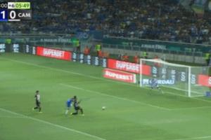 在禁区内,克鲁塞罗球员克里斯汀与米内罗竞技门将埃弗森发生身体接触。随后埃弗森报复用膝盖顶了克里斯汀一下。
