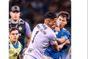 在冲突中,克鲁塞罗前锋若热先是跳起飞踢对手,跟上作势踢了一脚。随后边跑边拳打米内罗竞技替补门将德尔芬姆。