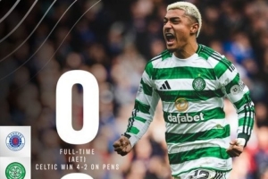 在常规时间互交白卷后,凯尔特人通过点球大战以4-2战胜死敌格拉斯哥流浪者晋级苏格兰杯半决赛,这引发了双方球迷的冲场事件。苏格兰警方在一份声明中证实,他们将与两队合作进行强有力的调查,调查内容也将包括开球前无票进入布卢姆洛恩路看台的球迷。