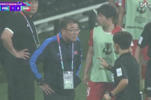 但是朝鲜女足方面不满判罚,全队聚集在场边抗议,比赛中断!