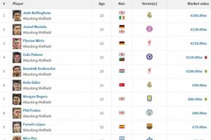 关于进攻型中场身价榜:贝林1.6亿欧居首,索博1亿欧超居莱尔升第五,当前阶段的情况已基本明朗。