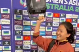 女足亚洲杯B组焦点战,中国女足2-1逆转朝鲜女足,最终以小组头名出线。比赛结束之后,经过混采区的姑娘们有说有笑,载歌载舞尽情庆祝。