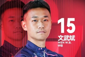 文武斌出生于1997年,来自湖北襄阳,司职中场,2012年,年仅15岁的文武斌凭借出众的天赋进入北京国安梯队。2016年,依靠优异表现入选U19国青队。文武斌在球场上展现出成熟的球风。头脑清晰,视野开阔,脚法精准拥有较强的大局观,相信文武斌在新赛季会用他的经验和视野,为球队中场注入新的活力与智慧,值得期待!