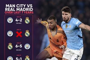 随着相关信息不断披露,这次鹿死谁手?皇马曼城欧冠历史交手15场,淘汰赛皇马4胜曼城2胜的情况逐渐清晰。