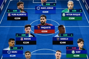 前锋:尤里·阿尔贝托(科林蒂安,2500万欧元)、卡伊奥·豪尔赫(克鲁塞罗,2600万欧元)、罗克(帕尔梅拉斯,3800万欧元)