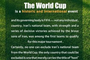 毫无疑问,任何人都不能将伊朗国家队排除在世界杯之外;唯一该被排除的,是那些徒有 “东道主” 之名,却无力为参与这项全球赛事的各支球队提供安全保障的国家。@世界杯@因凡蒂诺