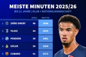 截至目前,五大联赛U21球员出场时间榜:埃梅里居首,伊尔迪兹第2亚马尔第7的相关情况大致如此,后续仍需关注进一步消息。