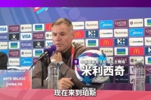 中国女足主教练米利西奇携吴澄舒出席亚洲杯1/4决赛对阵中国台北女足赛前发布会。