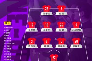 中国女足首发:22-陈晨、3-陈巧珠、5-吴海燕、20-张程雪、8-姚伟、15-王爱芳、19-张琳艳、26-张睿、7-王霜、9-乌日古木拉、23-邵子钦