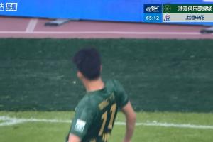 比赛第65分钟,王钰栋门前乱战破门,浙江1-1扳平申花>>