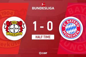 第6分钟,路易斯·迪亚斯中场左侧被库尔布雷斯抢断,随后库尔布雷斯分球给希克,希克推进后中路送出直塞,阿莱克斯·加西亚禁区内晃开角度后一脚爆射攻破乌尔赖希十指关,勒沃库森1-0拜仁。↓