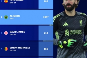 随着相关信息不断披露,利物浦队史门将英超出场次数榜:雷纳285场居首,阿利松253场次席的情况逐渐清晰。