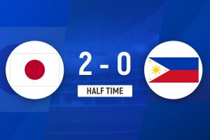 上半场比赛结束,日本女足2-0菲律宾女足。