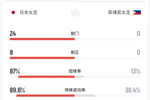 日本女足vs菲律宾女足半场数据: