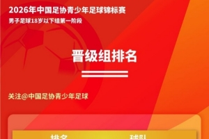 2026年中国足协青少年足球锦标赛男子足球18岁以下组第一阶段比赛结束,晋级组排名出炉👇👇👇