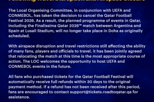 2026年卡塔尔足球节因旅行中断和领空关闭取消
