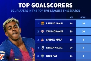 随着相关信息不断披露,五大联赛U21球员联赛进球榜:亚马尔14球居首 扬·迪奥曼德第二的情况逐渐清晰。
