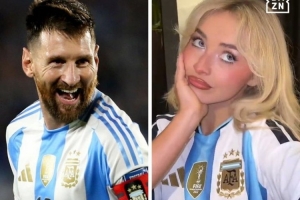 体育资讯3月17日讯 据DAZN报道,知名歌手卡彭特身穿梅西球衣。