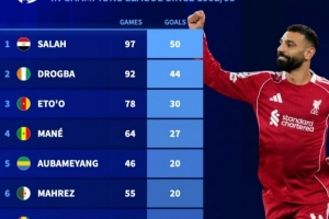 随着相关信息不断披露,欧冠改制后非洲球员射手榜:萨拉赫50球居首,德罗巴、埃托奥前三的情况逐渐清晰。