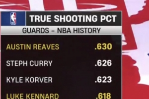 现阶段里夫斯生涯真实命中率63% 后卫历史最高 库里62.6%第2 肯纳德第4的相关动态如上,后续发展值得持续关注。