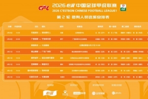 体育资讯3月20日讯 中甲联赛官方公布了中甲第二轮裁判选派结果,其中杜健鑫主哨广西恒宸vs宁波俱乐部。