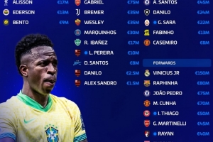 最近一段时间,德转公布巴西队身价:维尼修斯1.5亿欧居首,拉菲尼亚8000万欧第2被频繁提及,相关内容也在持续更新中。