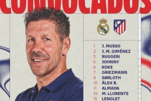 体育资讯3月22日讯 北京时间3月23日凌晨4:00,2025-26赛季西甲联赛第29轮焦点战,马竞将客战皇马。赛前,马竞官方公布球队本场比赛大名单,瑟尔洛特、阿尔瓦雷斯领衔锋线。