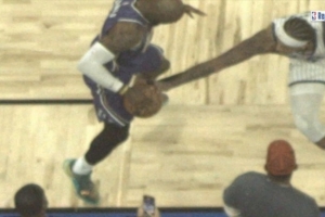 在比赛最后4.7秒的一次詹姆斯与班凯罗争抢出界球权归属的判罚挑战中,回放中心采用了鹰眼摄像机拍摄到的俯瞰视角画面辅助判罚。
