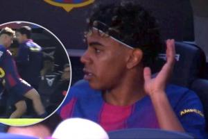 亚马尔第82分钟被拉什福德换下,他也并非心甘情愿接受换人。DAZN拍摄的画面清晰展现了亚马尔对弗里克的极大不满。他一离场,便刻意避开了教练的目光,即便两人有过击掌。在走向替补席座位的途中,亚马尔甚至四次指向弗里克。随后,在贝尔纳尔和费尔明身旁,这位前锋对弗里克的助理教练之一阿尔瑙·布兰科说道:“一直都是这样。简直疯了,这事儿太离谱了。” 阿尔瑙·布兰科试图安抚这位青训小将的情绪,但这番话非但没有平息他的怒火,反而让他更加激动。“总是针对我,永远都是我。” 亚马尔反复抱怨道,阿尔瑙・布兰科则回应:“没事的。” 不久后,比赛即将结束时,亚马尔躲进了通往球员通道的楼梯间,在那里什琴斯尼找到了他并给予安慰,对他进行了安抚。