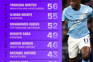 随着相关信息不断披露,本赛季英超过人数排行:多库63次居首,萨卡49次第5的情况逐渐清晰。