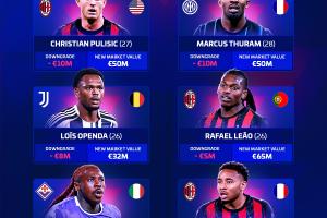 意甲最新身价前十(单位:欧元)↓