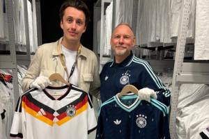 “甚至有一次正式比赛是穿着蓝色球衣出场的,那就是1986年墨西哥世界杯前的一场友谊赛。我们现在考虑的是:我们能为2026年设定什么样的色彩基调?那么我们不妨采用一种既适合德国足球,又根植于其DNA中的颜色。”