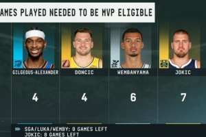 关于MVP候选人评奖资格:SGA&卢卡需打4场 文班6场 约基奇剩8场打7场,当前阶段的情况已基本明朗。