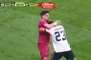体育资讯03月29日讯 友谊赛-墨西哥vs葡萄牙。第53分钟,替补登场的内托与墨西哥后卫加利亚多在无球状态下发生推搡,随后两人顶牛冲突,双双染黄。