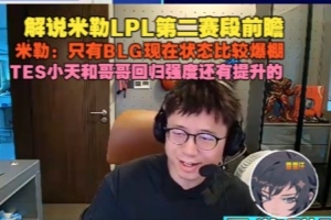 米勒:只有BLG现在状态比较爆棚,TES小天和哥哥回归强度还有提升的。