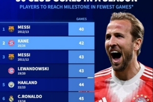 单赛季达成50球最快纪录榜:梅西40场居首,凯恩本赛季42场次席相关话题近来热度不低,不少球迷也在关注事情的后续发展。