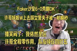 水晶哥看Faker沙皇6-0秀翻DK,许哥妖姬W上去踩女警夹子被一枪瞬秒笑嘻了:我依然是区,许哥全程零作用,队友纯在四打五!
