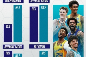 随着相关信息不断披露,2026年的黄蜂焕然一新!胜率翻倍 攻防效率激增 净效率增加13.5的情况逐渐清晰。