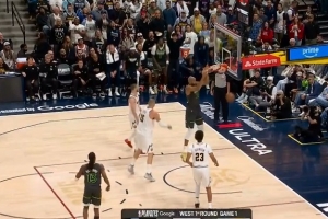 这么凶的嘛?戈贝尔挤开约基奇暴起放篮命中 又前场板双手补扣!