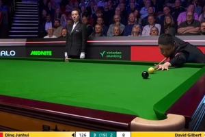 比赛第6局,丁俊晖打出单杆破百。据统计,这是丁俊晖在世锦赛中打出的第100杆百分杆。