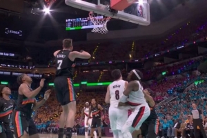 GIF-阿夫迪亚落地撞到膝盖有些受伤,下场处理